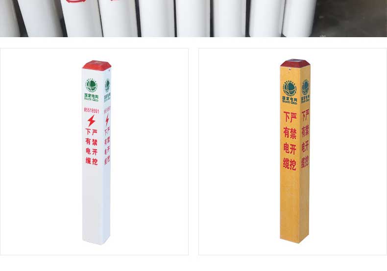 標志樁又稱為警示樁、標識樁、標志樁,常用于電力、通信、燃氣、自來水、鐵路地埋管線路徑指示標志。用于戶外、綠化帶、灌木叢、頂管兩側管線路徑指示,起到警示作用的新型產品。